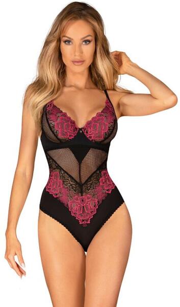 Obsessive Rosenty body, fekete-rózsaszín, XS/S